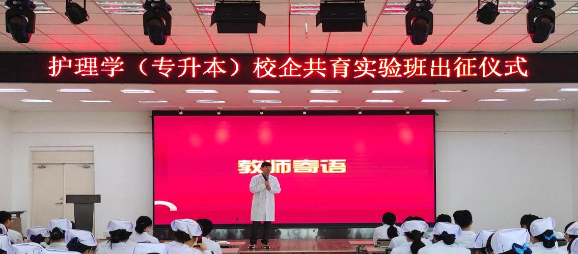 教务长张静肯定了护理学(专升本)专业对校企共育实验班筹备工作,以及通过职业教育的三个“融合”,即职普融通、产教融合、科教融汇所做的努力。指出本次实践是顺应现代职业教育体系建设改革的重大举措,并以一篇作文《勇气》,鼓励护理学(专升本)专业首批校企共育实验班学生所做的人生选择。张教务长提出三点要求:一是要提高部门领导和教师的思想认识,以此次活动为契机,做好横向课题开发、教师挂职锻炼等各项工作;二是教师自身要进一步明确目标,在做好校企共育工作基础上,及时发现问题,查找不足,挖掘典型案例,持续改进;三是学生要强化自身双重身份,并以“四会”为标准,即学会做人、学会共处、学会学习、学会创造,严格遵守学校和医院管理制度,做好由学生向“职业人”的转变。张教务长希望在校企双导师的带领下,学生通过职业化的学习和塑造,树立健康的职业观与职业道德意识,养成良好的职业习惯;通过企业生产实践,掌握过硬的职业技能本领,提升核心竞争力,为以后就业拓宽渠道。