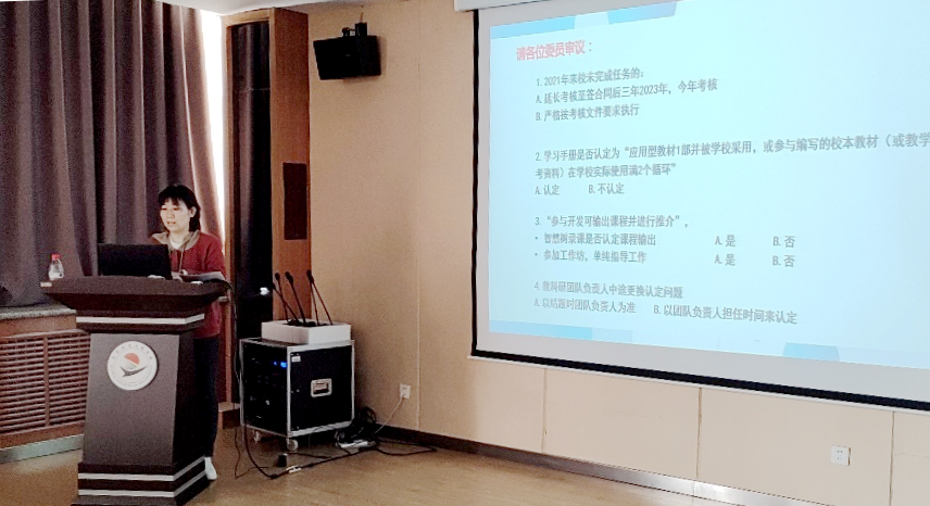 会上,王丹从教职工岗位结构、职称结构、考核类型选择及初步审核结果等四方面介绍了2020-2022年学校教职工科研考核基本情况,统计显示:教职工科研考核选择项目主要集中于课题立项、教科研团队建设、教学团队建设、学科竞赛等方面;同时,分析了科研考核未完成人员的具体情况。