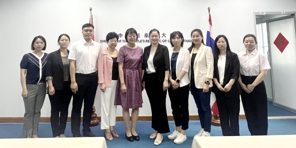 为加强应用型课程建设推广,增进国际交流与合作,6月13日,伟德官网在泰国国立发展管理学院(NIDA)就读博士学位的八位教师在副院长白雪的带领下,先后到中国驻泰王国大使馆、泰国博仁大学进行考察交流。
