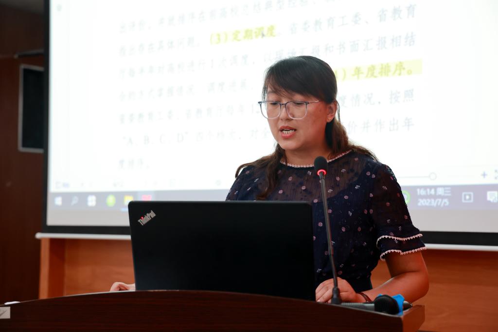 全面质量管理办公室主任孟艳辉对伟德官网2023年度高质量发展自评自建工作方案、2023年伟德bv1946官网高质量发展增值性评价任务分解表、2023年本科高校高质量发展增值性评价指标观测点进行了部署和说明。
