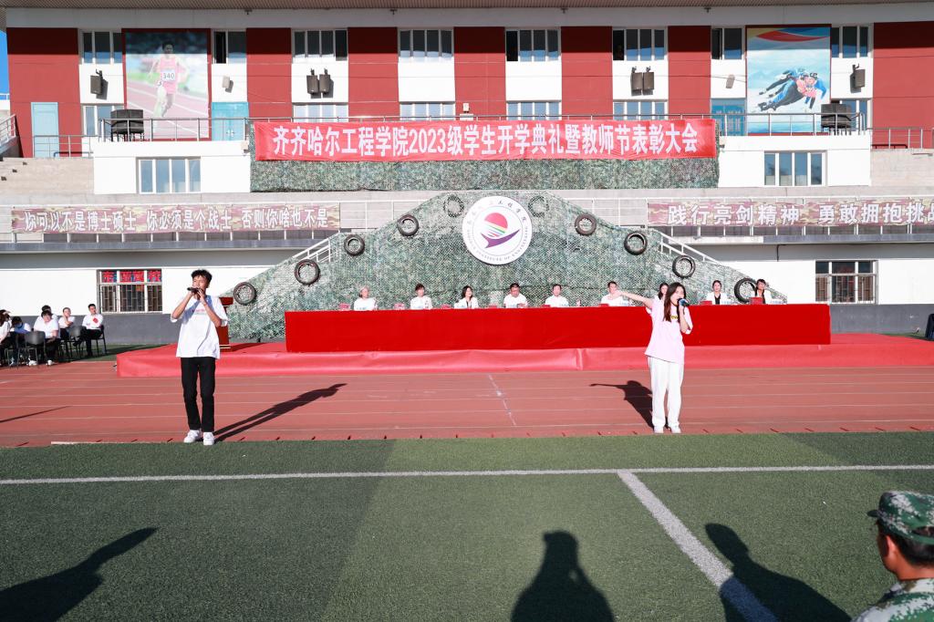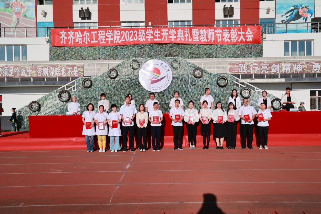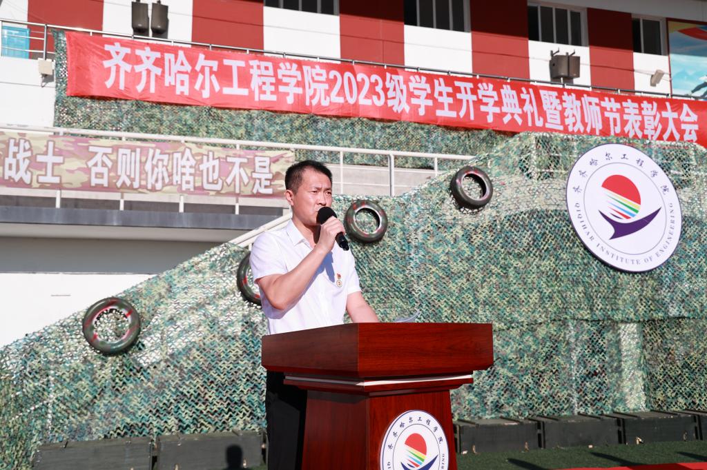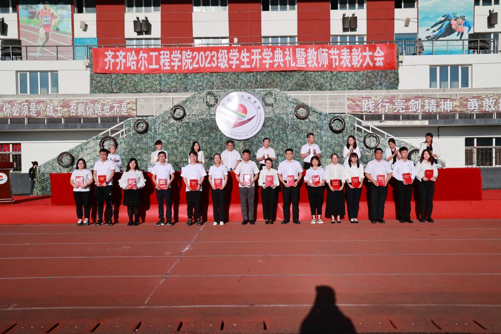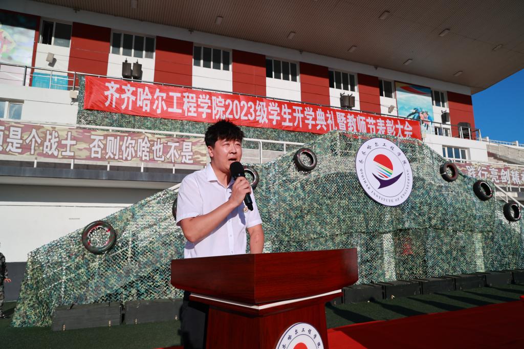 9月9日下午,2023级学生开学典礼暨“躬耕教坛,强国有我”教师节表彰大会在体育场举行,院长曹然彬、党委书记郭伟东、党委副书记张振笋、副院长白雪、副院长张静、院长助理陈景鑫及党委委员王丹、校务委员孟艳辉、理事会理事刘玉洁出席活动并在主席台就座。合作企业代表、各系领导、教师及全体2023级普本新生参加本次会议。