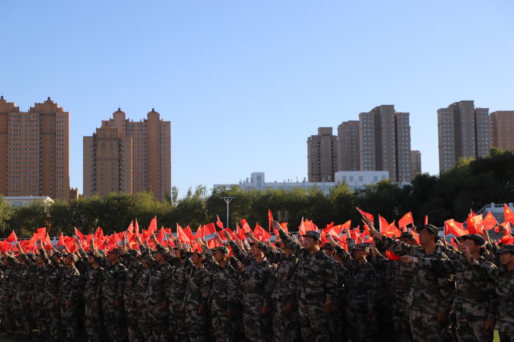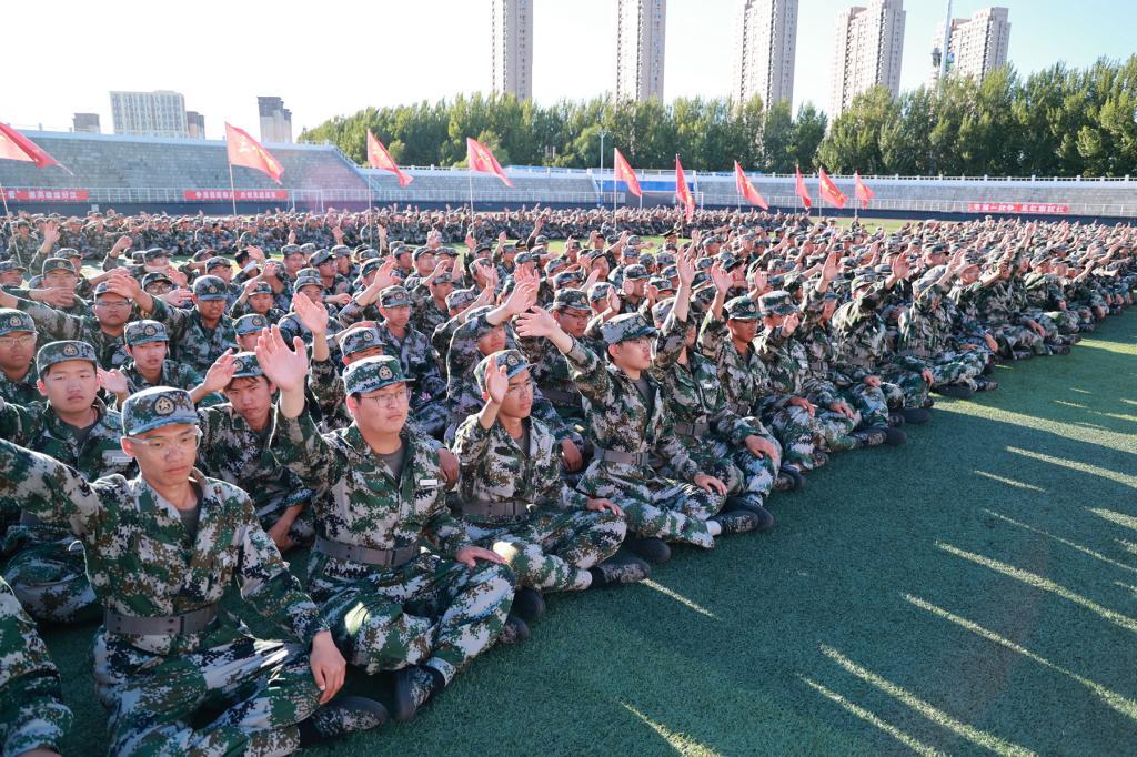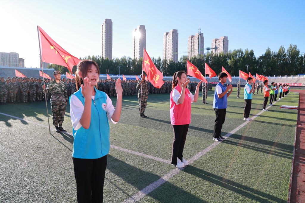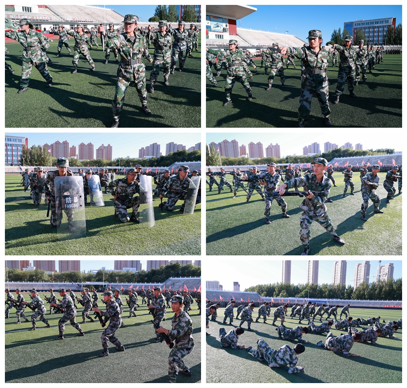 在学长教官团团长孙志屹的指挥下,全体新生以分列式、匕首操、盾牌操、刺杀操、战术格斗等精彩表演,展示了军训成果。学长教官团军旗护卫队英姿飒爽,赢得了现场师生的阵阵掌声。