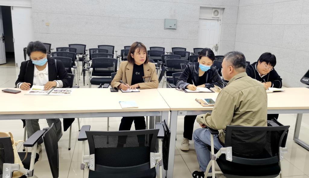 在哈尔滨建筑云网络科技有限公司,教师一行与总经理王晶、副总经理崔丹等人就建筑相关课程建设、学生技能提升等方面进行交流。