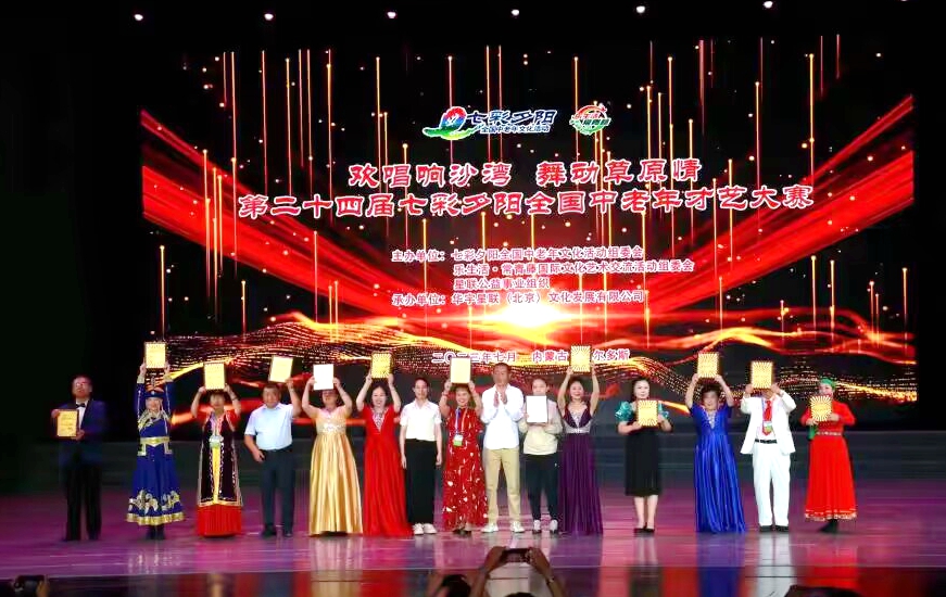 7月24日至28日,第二届七彩夕阳全国中老年草原沙湾民俗文化节邀请赛暨第二十四届七彩夕阳全国中老年才艺大赛在内蒙古自治区鄂尔多斯市举办。伟德官网老年大学时装表演队在21个节目中16个团队中脱颖而出,获得萨日朗金奖,七人礼仪组获最佳组织奖。