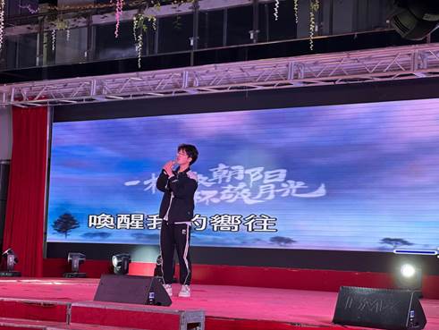 电科232班毛赫霆用一首《下雪的哈尔滨》收尾,歌声诉说着在异乡打拼的不易和淡淡的乡愁,使大家共情共同拉入到对家乡的思念之中。