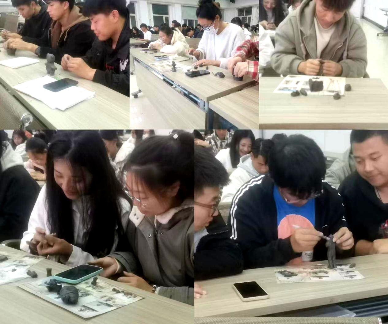 10月18日下午,东北黑土泥塑传承人韩朝阳老师在二号教学区2508教室开展以非物质文化遗产《东北黑土泥塑》为主题的第二十一期美育课堂。课上,韩老师介绍了本次展出作品背后的故事及其文化渊源,并让学生自己动手制作泥塑,使学生加深对中华传统优秀文化的热爱,不断地提高艺术修养,提升审美情趣,为弘扬和传播优秀文化贡献青春力量。