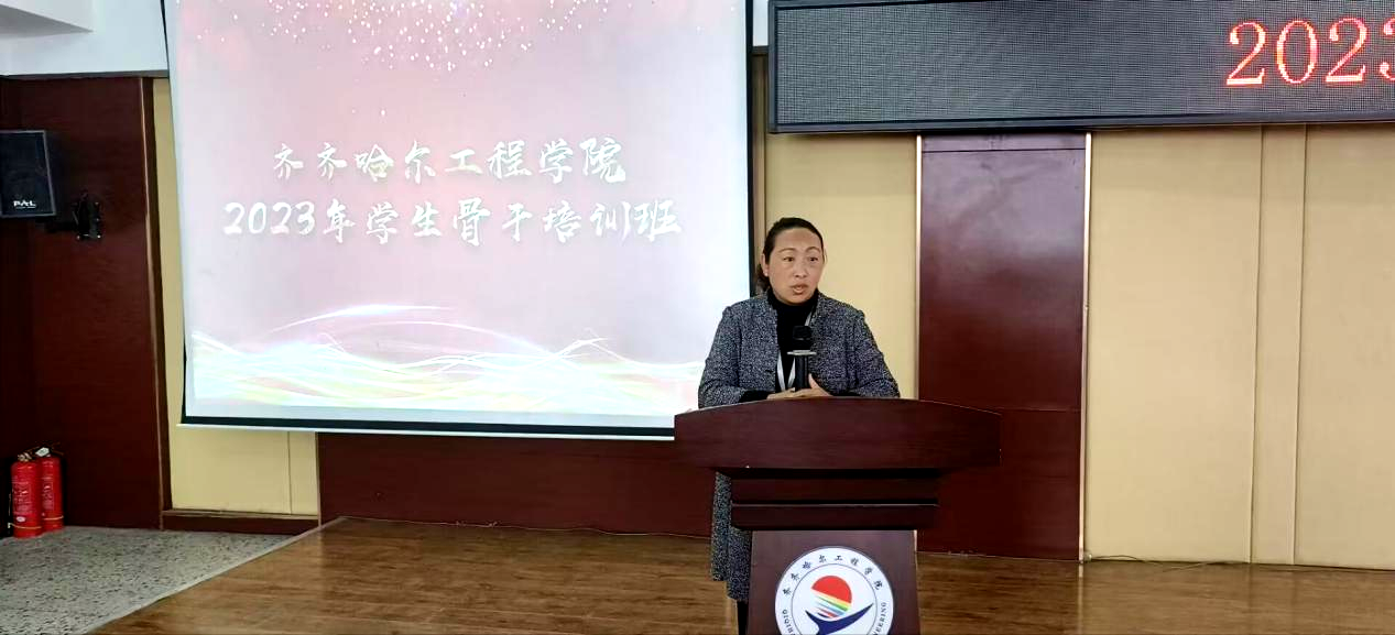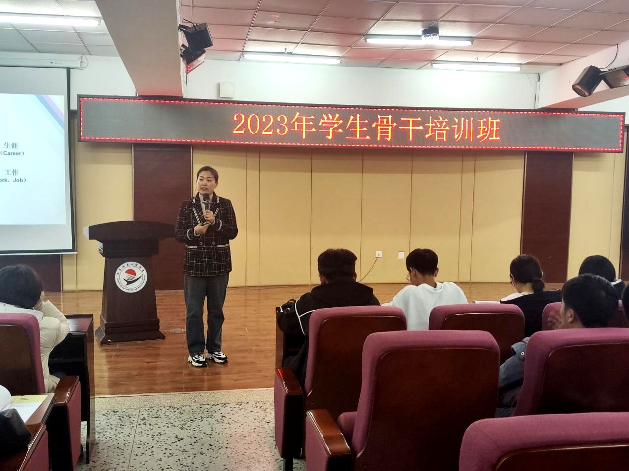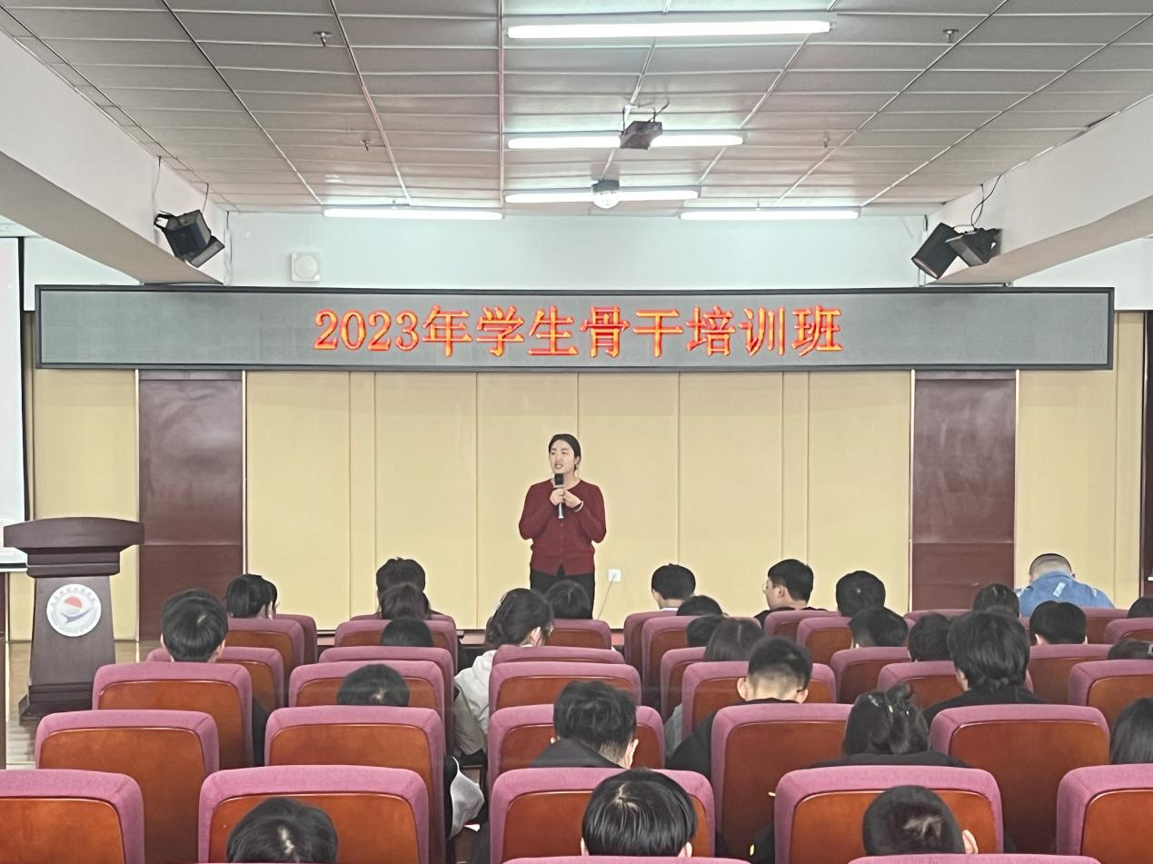 学工处负责人王丽萍表示,学生骨干代表的不仅仅是个人的形象,也不仅仅是各系的形象,而是整个学校的形象。学生骨干要明确身份,清晰定位,以自身言行来影响身边人;要全力以赴,全情投入,做师生信赖的知心人;要帮助同学共同进步,德智体美劳全面发展。