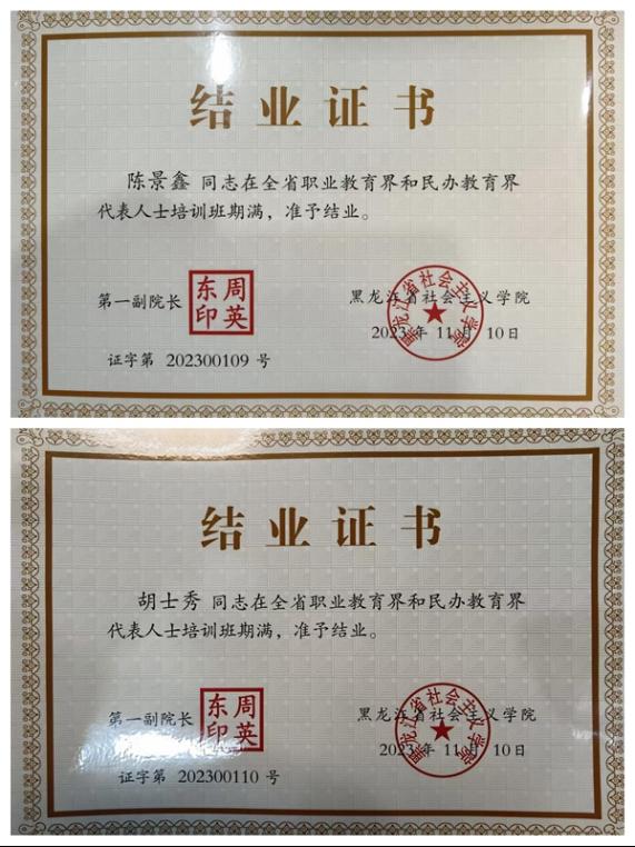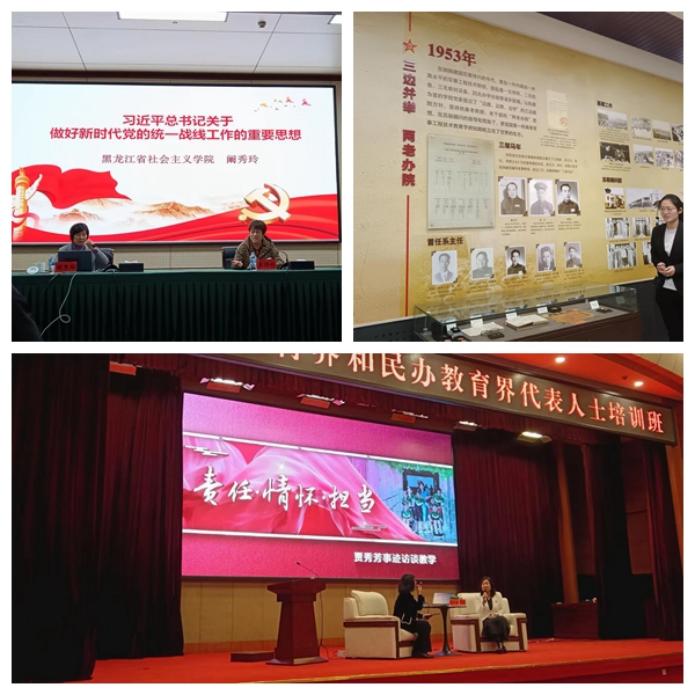 11月6日-10日,由中共黑龙江省委统战部指导、黑龙江省中华职业教育社主办、黑龙江省社会主义学院承办的全省职业教育界和民办教育界代表人士培训班在哈尔滨开班,来自全省各级中华职教社分社主要领导、负责人及职业教育界、民办教育界代表人士共计45人参加了此次培训班。齐齐哈尔市中华职业教育社秘书长、伟德bv1946官网院长助理陈景鑫,学校办公室胡士秀参加了培训班。