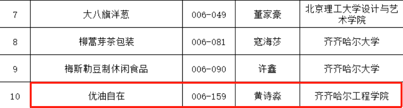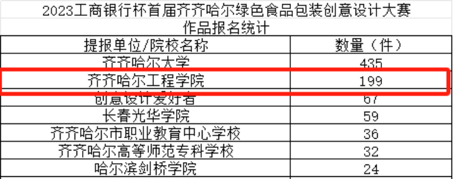 近日,由中共齐齐哈尔市委宣传部、齐齐哈尔市农业农村局主办的“工商银行杯”首届齐齐哈尔绿色食品包装创意设计大赛,公布初赛入围名单,学校校信息工程系视觉201刘莹佳、视觉203金月、视觉211黄诗淼三位同学以出色的设计风格被评审认可,初选入围。
