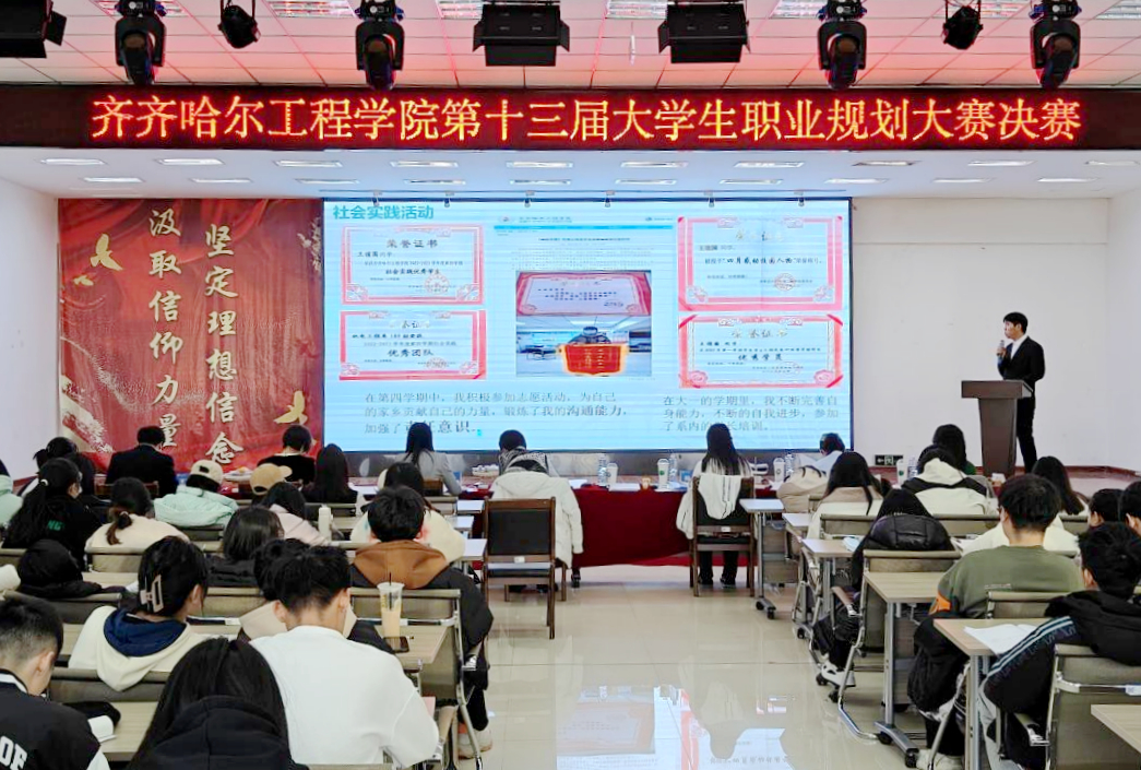 近日,学生发展中心在二号教学区2508会议室举办了第十三届大学生职业规划大赛决赛。本次比赛由学生发展中心主办,大学生职业发展协会承办,全校通过初赛、复赛最终有19位选手进入决赛。百余名学生代表观看此次比赛。