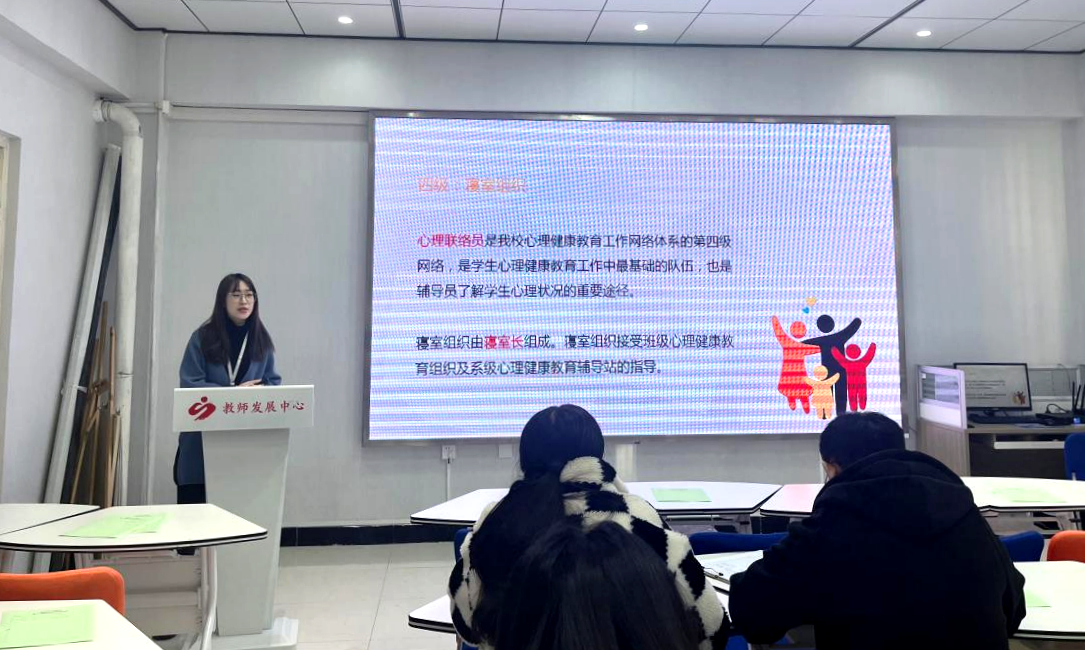 11月24日,为进一步帮助和强化提升辅导员心理健康教育工作业务能力,更好地服务于学生的健康发展和全面成长成才,第53期辅导员成长沙龙在二号教学区2102培训室召开,本期沙龙学生工作处邀请了学生发展中心周倍娴、石伟两位老师为全体学工人员进行培训,主题为心理健康教育工作解读,全体学生工作者40余人参加。