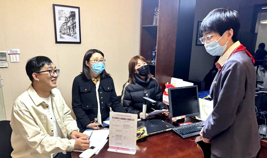 11月28日上午,沈斯文一行赴广发银行杭州分行开展调研,该行综合业务主管卢靖珊、理财经理王博全程陪同。卢靖珊经理介绍了该行对公服务、运营部、运营作业中心、税定贷、智汇柜台业务等项工作,并针对《商业银行业务管理学》《商业银行业务与运营》等课程给出了建议。