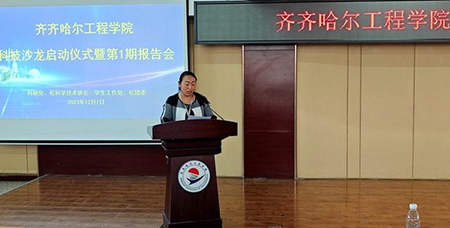 在科技沙龙启动仪式上,王丽萍代表承办部门讲话,她解读了科技沙龙的宗旨、意义、形式及相关要求,并宣布科技沙龙正式启动。她表示,科技沙龙活动的开启是同学们学习生活中的一件大好事,是学校新培育的第二课堂,需要同学们积极参与,用好资源,努力学习,增长才干。希望同学们在实践中历练,在奋斗中成长,努力做有理想、爱学习、肯吃苦、敢担当的新时代好青年。