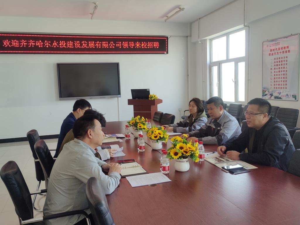 杜昌明高度赞赏了伟德官网的人才培养模式和学生的实践能力,并介绍了齐齐哈尔水投建设发展有限公司的发展情况。该公司一直致力于水利工程、市政基础设施等领域的投资、建设和运营情况。他表示,非常愿意与学校开展校企合作,实现资源共享、优势互补,促进人才培养和企业发展的双赢。随后,该公司总工程师孙长利、综合办公室主任王静,就此次来校招聘的相关工作进行了介绍。此次齐齐哈尔水投建设发展有限公司计划招聘10名土木工程施工技术人员,主要从事现场施工管理、施工技术人员、预算员、办公室人员共四个岗位。