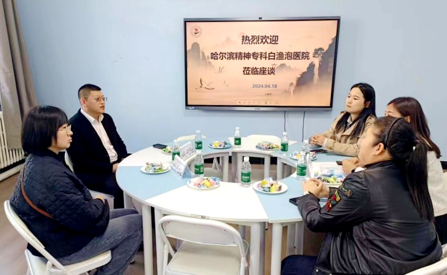 4月18日,学生发展中心负责人康静带领心理教研室郭明敬、艾涵塽老师与学校附属白渔泡医院张天奇副院长、闫虹宇主任在三号教学区3105室,就学校心理健康教育建设工作进行洽谈。