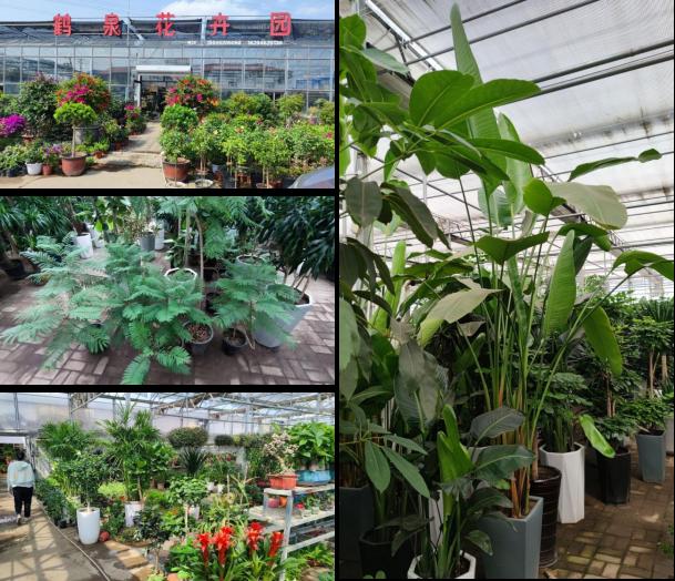 7月16日,调研组一行来到了中谷花卉及鹤泉花卉园,对热带雨林植物进行调研,通过调研发现了众多热带雨林特有的植物种类,如巨型棕榈树、热带花卉、蕨类植物、攀缘植物等,这些植物种类繁多,形态各异,可以形成丰富多样的植物景观。