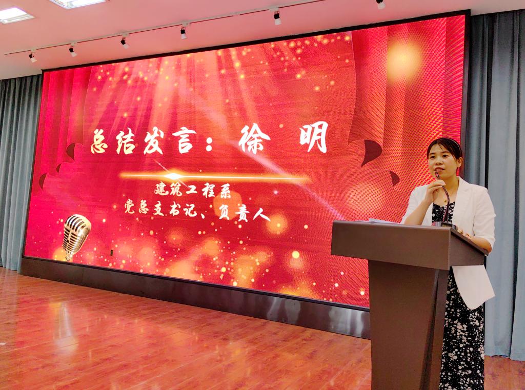 徐明作总结发言,她表示,本次竞赛月围绕建筑工程领域的关键技能和创新需求,精心设计测量实践技能应用大赛、校园北区BIM数字建筑创新大赛等多项竞赛。竞赛不仅检验了学生的专业理论知识,更培养了学生实际操作能力和团队协作精神。竞赛过程中,中建二局第四建筑工程有限公司、中国能源建设集团东北电力第二工程有限公司的项目经理和技术负责人作为评委和嘉宾,为学生提供宝贵的行业指导和建议。经过一个月的努力,参赛队伍在指导教师的悉心指导下,不断优化设计方案、提升技术水平,最终在比赛中取得优异成绩,也充分展现了建筑工程系切实践行“亮剑”精神。