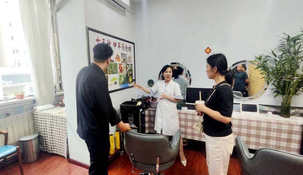 哈尔滨一辰医院院长赵明昕对调研团队的到来表示热烈欢迎,带领调研团队参观医院的各个科室,包括体检科、中药局、康复中心、中药养发染发中心和名医工作室等区域,并对各区域的功能进行详细介绍。