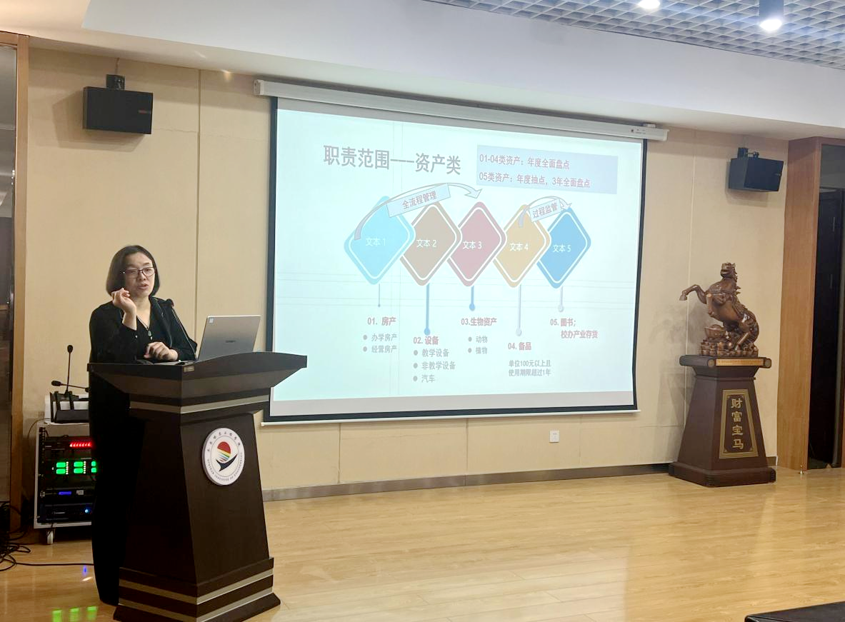 张磊从资产组织架构、资产制度体系、资产管理核心、资产注意事项等进行资产管理工作交流,重点介绍学校资产管理制度体系建设、两率考核、资产清查、资产管理考核等内容。