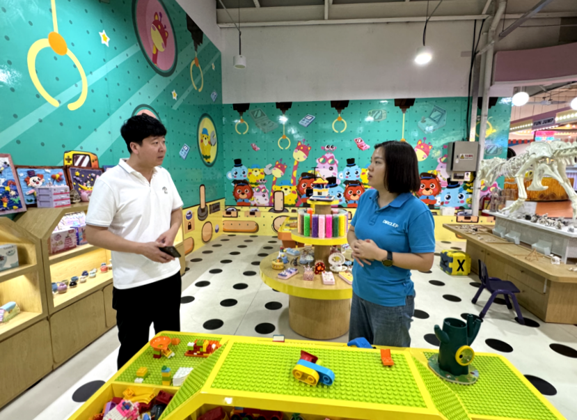 14日上午,考察团一行实地参观了迪乐尼的展厅以及工厂,初步确定了知甘堂将引入的项目包括角色体验、运动潮玩、VR等。