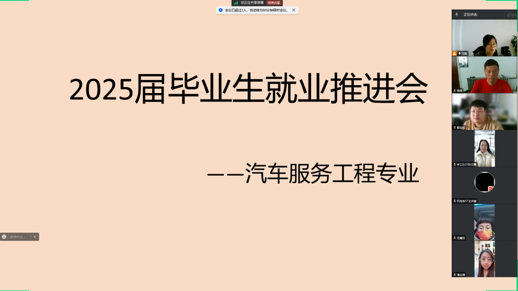 车辆工程专业负责人宋华主持2025届毕业生就业推进会议。宋华希望生涯导师们要牢记自身的职责,积极主动开展各类就业座谈活动以及心理疏导工作,通过与毕业生深入交流与疏导,帮助学生克服就业过程中产生的心理焦虑情绪,提升学生对就业的期待值与自信心;辅导员与生涯导师之间要紧密配合,协同开展就业指导、政策宣讲以及定点定期帮扶等工作,并精准掌握学生的动态,及时提供针对性的帮助,强化整体就业工作的成效;专业教师要密切关注企业行业对人才需求的动态变化与发展趋势,结合学科建设的实际需求,扎实做好市场需求调研以及未来规划工作,为拓宽学生未来的就业渠道开辟新路径。