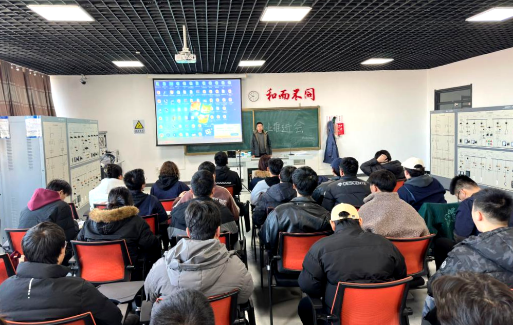 电气专业就业推进会由专业负责人王立鹏组织,辅导员于海龙、生涯导师、优秀学长以及毕业生参加。王立鹏对当前严峻的就业形势进行了深入透彻的剖析,并指出了就业市场所面临的诸多挑战以及潜在的机遇,使学生能够更加清晰地认识到自身所处的就业环境。随后,优秀学长们分享了他们的求职经历与职业发展心得,并从技能提升的关键要点、职业规划的科学方法、求职策略的巧妙运用等方面,为学弟学妹们给出了建议。