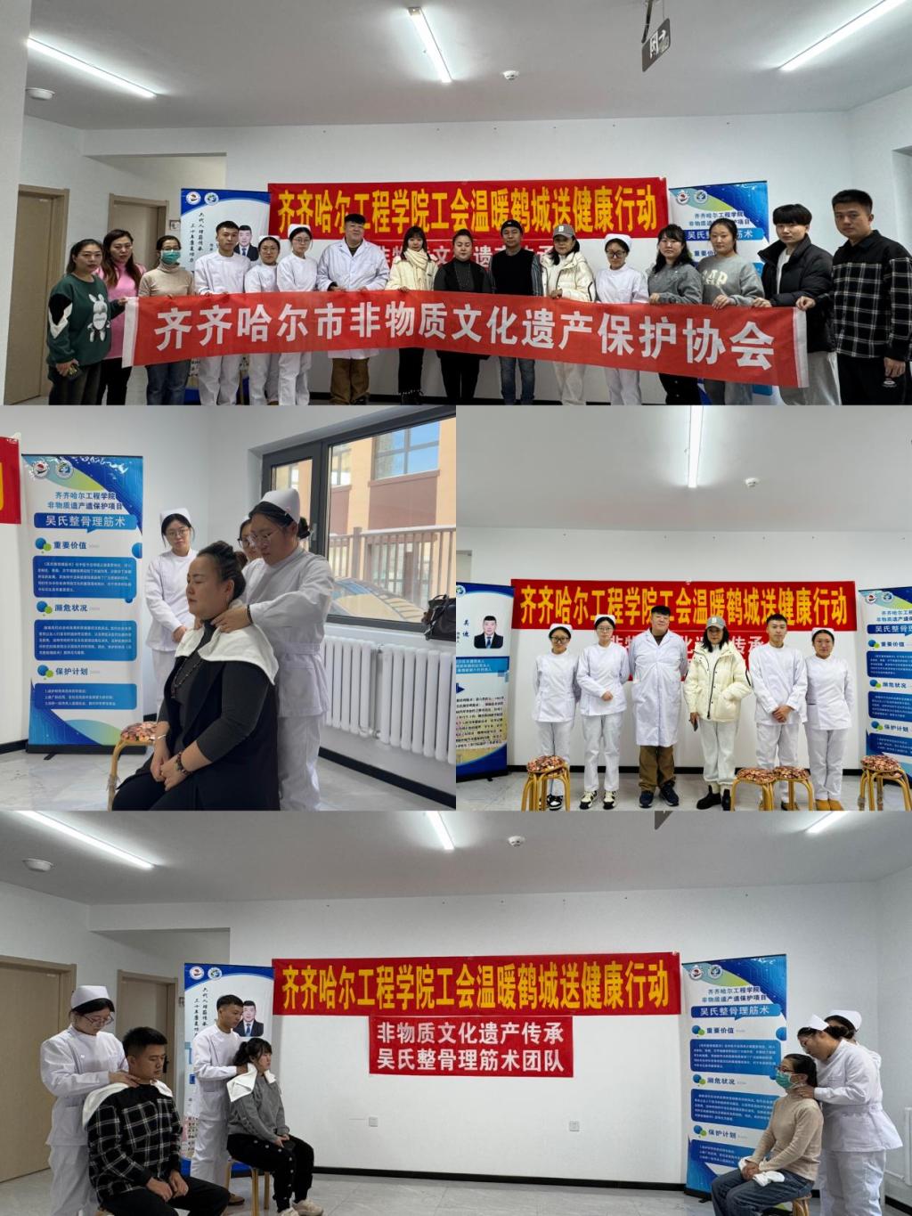 为贯彻落实习近平总书记关于社会工作的重要指示精神,更好的推进非物质文化遗产保护传承和造福社会,近日,学校工会联合龙沙区文旅局共同组织开展“温暖鹤城送健康”行动,非物质文化遗产传承项目理筋术传承人吴迪老师带领康护工程系学生走进社区为工作人员提供健康推拿服务。