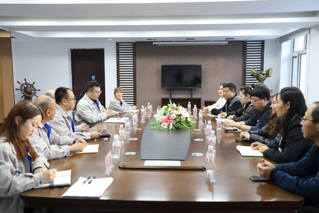 签约仪式前,校企双方在齐翔建设集团大宇建筑工程有限公司进行座谈。