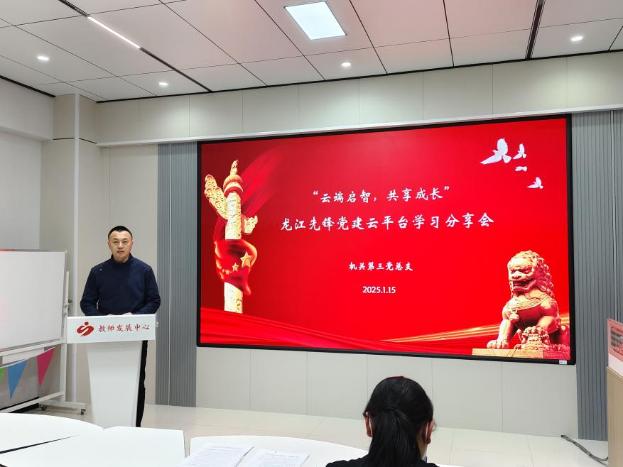 为进一步强化党员对创新理论的理解和把握,提升党员的政治素养和理论水平。1月15日,机关第三党支部在二号教学区2102室组织了“龙江先锋”党建云平台学习分享会。机关第三党支部书记王丽萍及支部党员参加。宣传委员郭明敬领学,组织委员郭凤宝主持。