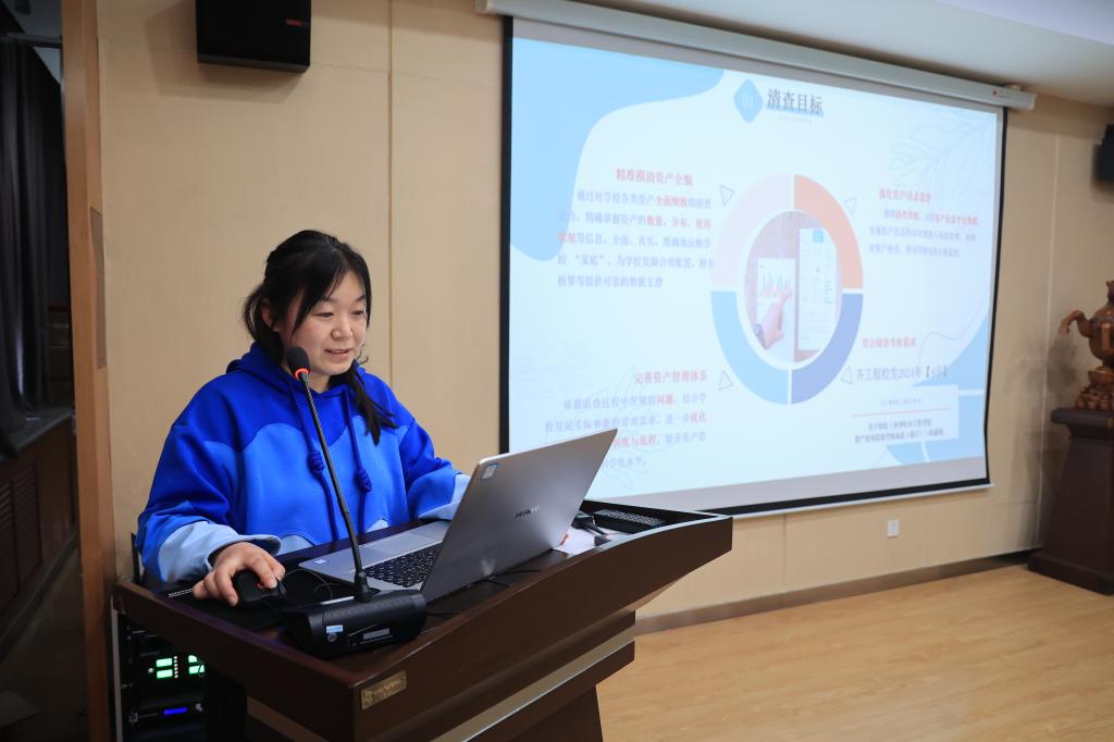 张磊作《聚焦问题整改,提升资产效能—2024年度资产管理工作总结与 2025年工作规划》汇报。2024年学校教学仪器设备总值突破1亿元,完善“完好率、利用率”考核机制,“两率”逐年提升;依托网络精查资产,实现数据可实时共享与动态监控;通过专项培训方式,提升资产管理人员业务能力,做好教学条件保障与服务工作。针对在验收管理、资产清查、房产管理中反馈问题,2025年聚焦学校审核评估、硕士学位授予立项建设等重点工作,根据职能,对照任务找差距,瞄准问题补短板,提升物资保障度与服务效率。