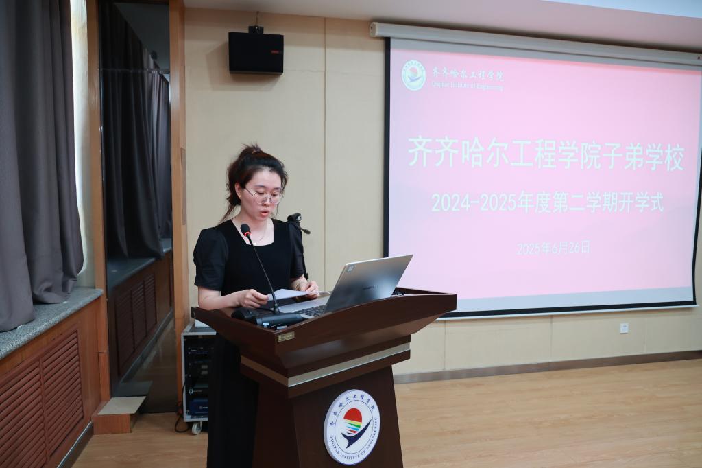 6月26日下午,子弟学校2024-2025学年度第二学期开学暨暑期托管班开班式在图书馆601报告厅举行。学校理事、总会计师姜岩、学校工会委员、各基层工会主席及报名送托教职工等40余人参加。学校工会副主席、学生工作处处长王丽萍主持仪式。