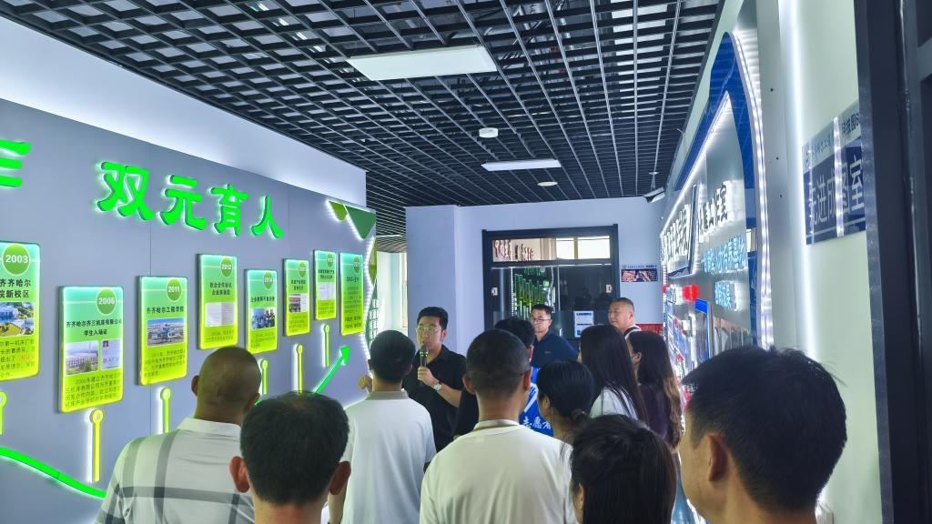 在8月30日上午,机电学院在迎接新生活动中举办了校园开放日活动,院长敖林喆、党委副书记于海龙带领专业老师和学生会迎新队伍,组织2025级新生部分家长参观机电学院教学场所。