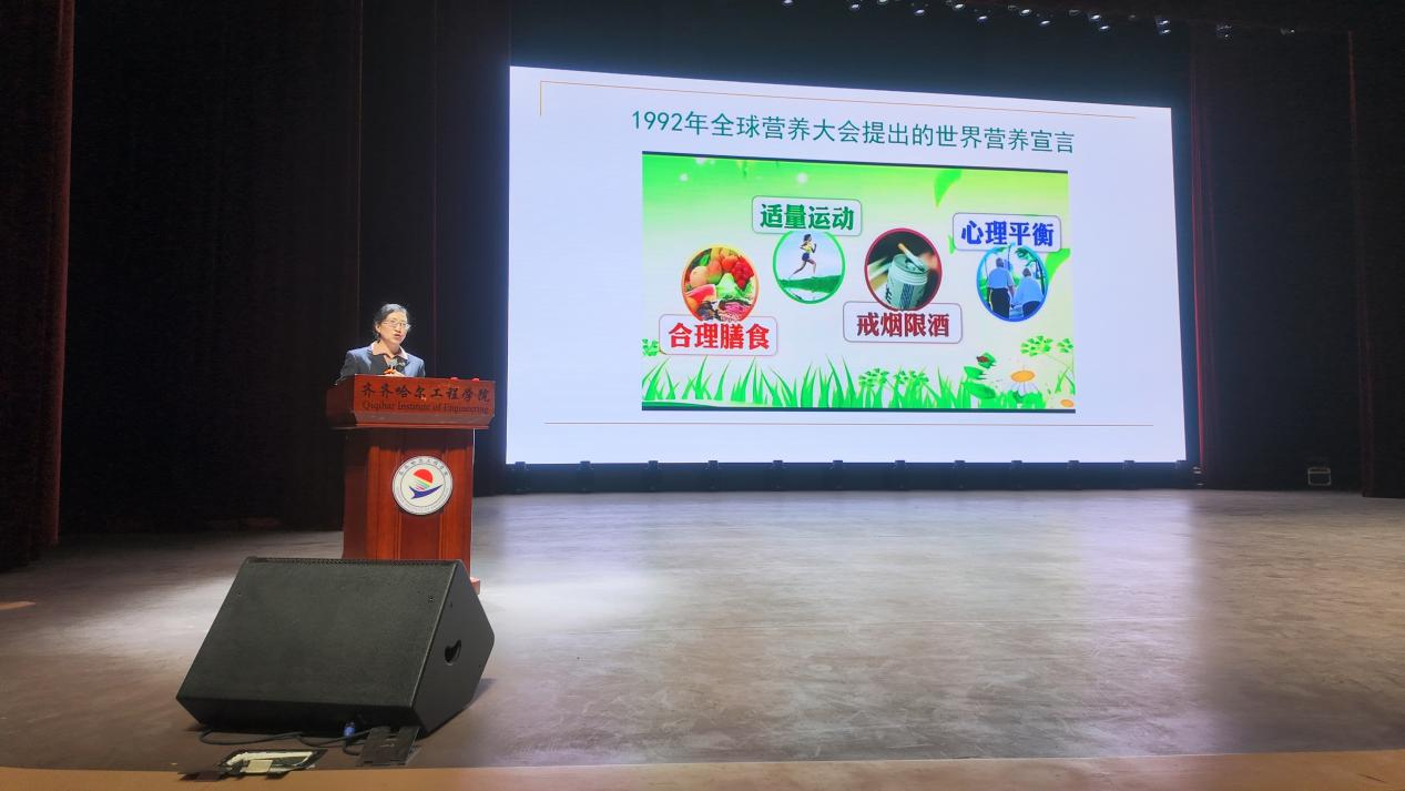 为深入贯彻党的二十届三中全会精神,切实维护教职工健康权益,传播科学健康知识,引导教职工养成健康生活方式,近日,省科教文卫体工会开展的“健康讲座送校园”活动在学校人民会堂举办,本次活动由哈医大一院临床营养科主任医师闫雅更教授为全校师生带来题为《科学饮食,远离慢病》的健康讲座,近千名师生现场聆听,一同解锁饮食与健康的密码。