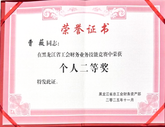 近日,黑龙江省总工会主办的全省工会财务知识竞赛在大庆市圆满落幕。伟德官网产教集团会计曹薇凭借扎实的专业功底和出色的临场发挥,经过三天的激烈比拼,荣获个人二等奖;同时,她所在的市总工会团队也斩获团队二等奖,实现双料获奖的佳绩。此次竞赛充分展现了伟德官网财务人员的专业素养与良好精神风貌。