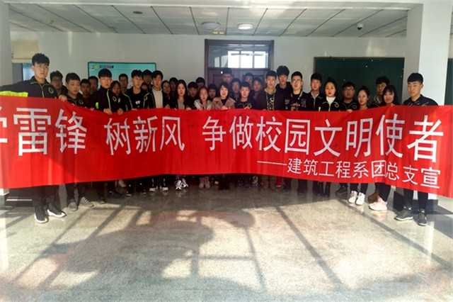 3月5日,学习雷锋纪念日,建筑工程系团总支举行“学雷锋 树新风 争做校园文明使者”学雷锋活动月主题活动启动仪式。