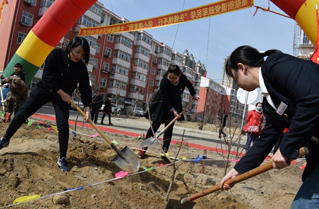 4月22日,是第50个世界地球日。当日上午,学院教务处处长白雪与建筑工程系团总支书记蔡爽,带领建筑工程系20名学生参加了龙沙区南航街道党政军民学“先锋携手行 同心建家园”主题植树活动启动仪式,并在仪式结束后参加植树活动。