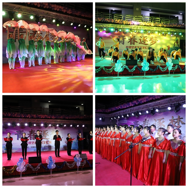 为推进校园文化建设,陶冶师生的艺术情操,丰富校园文化生活,为学生提供一个展示艺术才华的舞台,12月16日-21日,学校团委在大学生活动中心举办“青春逐梦”校园艺术节文艺汇演,近270名学生演员身着盛装,舞动青春,歌唱未来,为来自6个系的4800名师生奉献了6场精彩的文艺节目。