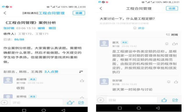 这次学校组织的在线教学中,工程管理专业负责人张好徽全流程精心备课,唱好“三步曲”,以学习通直播+QQ群互动的方式,为工管171班、172班讲授本学期开设的一门专业课《工程合同管理》。经过两周的“磨合”,她和同学们逐渐适应并喜欢上在线教学这种方式。