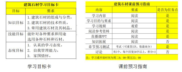 郝丽娜老师根据教学规律及特点,践行“以学生为中心”的教学思想,精心设计教学内容和考核评价方式,引导学生主动学习。对学生能自学的(低阶知识点),以相关教学视频引导学生自学;对学生自学有困难的(高阶知识点),通过在线直播课进行详细讲解,帮助学生学习。还结合教学目标,提前下发“学习目标卡”“学生预习指南”和“土木工程材料学习秘籍”。
