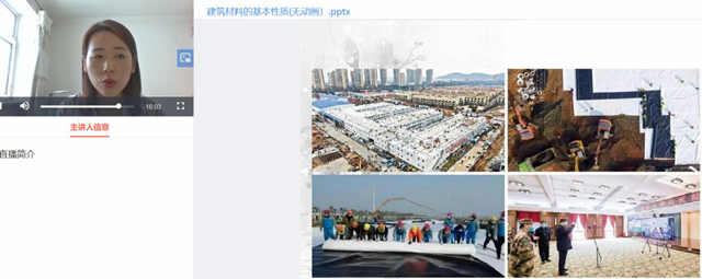 郝老师在直播课上讲解抗渗性时与火神山医院地基处理结合,告诉学生火神山医院在地基处理时,在地基上先铺了一层HDPE膜,这层膜的主要作用就是防止医院的废水废液渗透到周围的土壤和地下水中。火神山医院病房的框架构造,采用复合轻钢板材板房建造,这种活动板房可以迅速地组装与拆卸,并能保证良好的效果。板房的墙体采用了防火性能和保温性能好,还能隔热吸音的50毫米厚岩棉板。也正是有了这些复合材料,火神山医院才得以在10天内建成。让学生从中切实感受到自己的课程与现实如此接近,增强了学生的专业认同感。同时,还引申讲述火神山医院背后的中国力量,培养学生的家国情怀。勉励学生把专业知识学好,将来回报国家和社会。《土木工程材料》将思政元素融入每节课堂,思政教育贯穿教学设计和实施全程。
