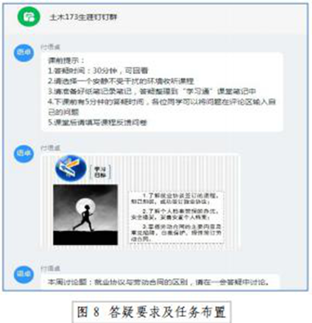因应疫情防控形势,按照学校在线教学部署,《职业规划与就业指导》课程教师经集体讨论,确定了在线教学思路与方法。针对自己所担任2017级本科班级学生《职业规划与就业指导》的授课任务,本着以“学生为中心”理念,着力营造学生乐学的学习氛围,对《职业规划与就业指导》课程教学进行再设计,采用“自学-研讨-反馈”模式,以超星学习通作为教学平台、钉钉直播作为答疑平台展开在线教学——