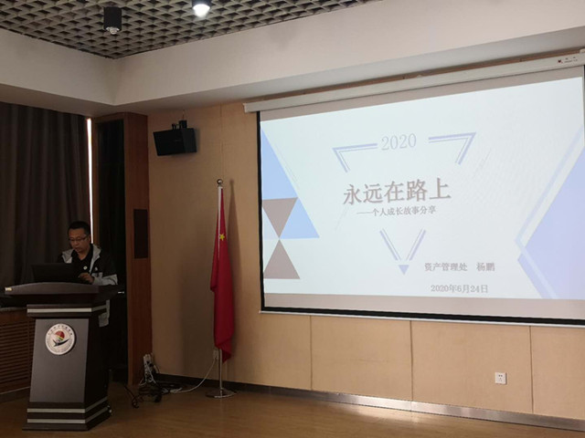 资产管理处杨鹏老师以《成长在路上》为题,讲述了自2009年来校至今,在多个岗位工作中收获了不同成长。通过案例剖析自身存在的工作不细心、想当然、制度执行不到位等问题,表示要改变工作作风,提升工作质量,践行服务宗旨,认真履职尽责。
