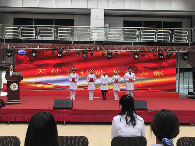 护理学184班蒋揽月同学代表获奖者做表态发言。护理学172班刘超同学是国家励志奖学金获得者,他通过网络平台与大家分享了疫情防控期间的经历与学习感悟。健管181班周瑶同学作为学生代表发言,分享了自己在学习方面总结的经验与技巧。