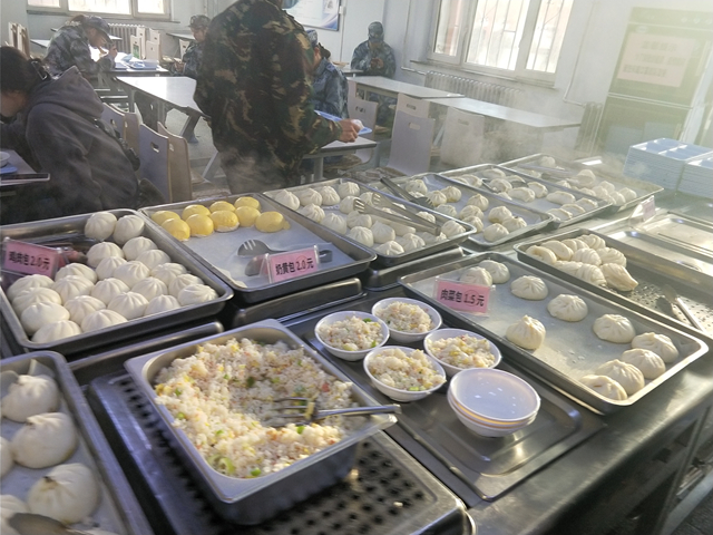 学校总务处食品科科长冯伟介绍了这方面的情况:全校共有五个食堂,总面积12423.72平方米,分布在校园各个生活区和五号教学区附近,设置餐位数2568个,从不同的地段位置特点上满足师生不同时段的用餐需求。