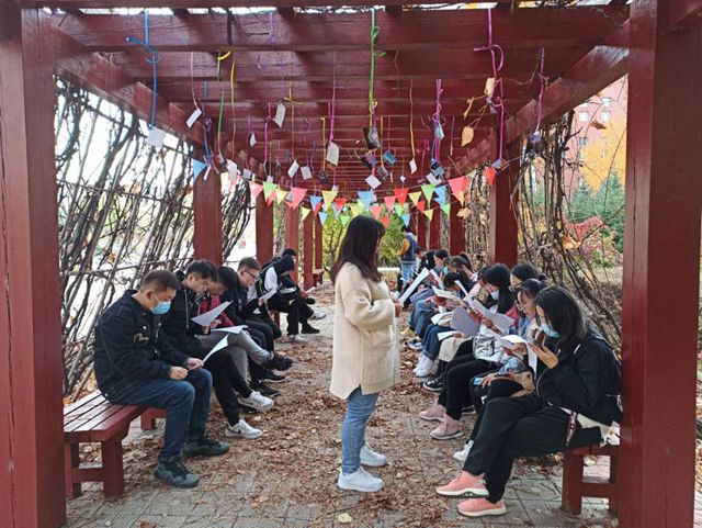 10月9日,拾光英语竞级社团与信息系学长助学社团共同举办“读”一无二活动,促进同学们英语朗读、阅读能力的提高。此次室外晨读活动在校园先觉亭进行,同学们拿着事先准备好的晨读材料进行朗读、背诵。在书声朗朗的氛围当中,大家互相交流学习,竞相进行好句好段的背诵、记忆,为即将到来的英语四六级考试做出准备。