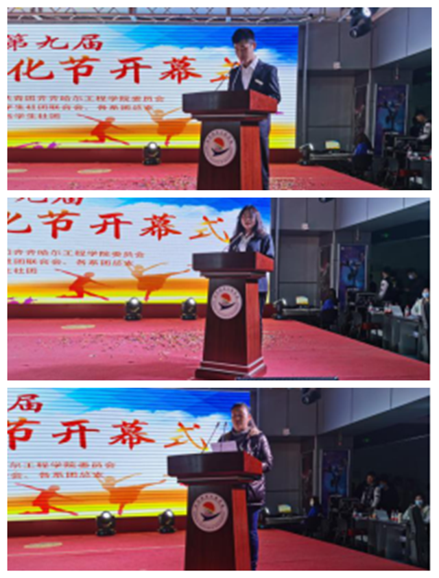 10月28日晚,伟德官网第九届社团文化节开幕式在学生活动中心举行。学生工作处负责人刘贤鹏、副处长郭明敬、信息工程系学生工作副主任孙晓芳、机电工程系学生工作副主任王虹及各社团指导老师、负责人参加了开幕式。