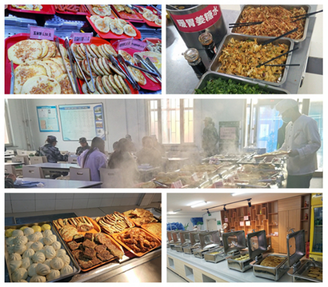 如今校园里有一二三食堂,还有双层的“三味餐厅”和“百草餐厅”,它们分布在校园各个生活区和五号教学区附近。据学校总务处食品科科长冯伟介绍:全校共有五个食堂,总面积12423.72平方米,设置餐位数2568个,从不同地段为师生提供一日三餐的服务;共有35位经营者(不包括每家雇佣人员),其中中餐餐厅六家、特色档口16家(含民族档口)、饮吧四家;在这些餐厅,既可以吃到家常菜,又可以品味川湘麻爽的酸辣粉、麻辣烫,有鲜香可口的馋嘴鱼,还有悠闲美味的旋转小火锅等等。