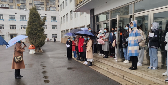 讲座结束后,许长艳老师还冒雨给大家介绍北校区的校园,他们中有学校“第一桶”金:“中和楼”、计算机楼、小区大门等。她在讲解中感慨学校的发展变化,从曹勇安理事长当年带领学生亲手种下的柳树,到两侧已经高过楼顶的苍松翠柏,见证学校在三十年中不断发展,不断提升。