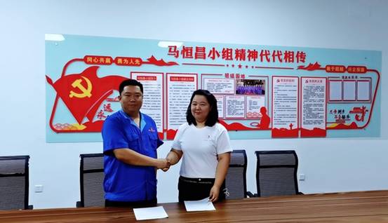 在马恒昌小组展览馆会议室,思政教学部副主任李娜与马恒昌小组第18任组长马兵共同签订了《学生爱国主义教育实践基地共建协议书》。