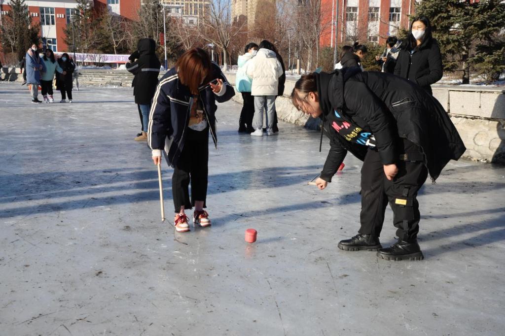 本学期冰上体育课包括:抽冰嘎、滑冰、冰爬犁等项目。冰上体育课不仅给学生带来了快乐,更是让来自南方的同学满足了就读于北方院校的新奇感,加深了师生对于冰雪运动的理解和认识,培养了学生不畏困难,勇于拼搏的顽强意志。
